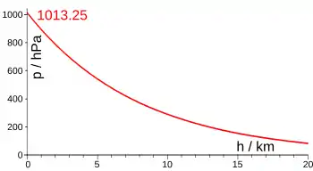 En règle générale, la pression atmosphérique diminue de moitié à environ 5 500 mètres et la température moyenne de l'atmosphère diminue de 9,7 °C par 1 000 mètres[7]. Cependant, ce taux n'est valable que pour une atmosphère normalisée et varie en fait selon le contenu en vapeur d'eau et l'altitude. Ces propriétés peuvent être démontrées rigoureusement si l'on fait l'hypothèse que l'atmosphère est en équilibre (bien que cela demeure une excellente approximation, cela n'est pas tout à fait vrai en pratique).