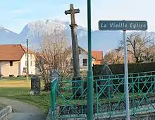 Le centre de l'ancien village médiéval, autour du prieuré et de son église, était situé dans la partie la plus proche du lac, en zone humide[1]. Le lieu reste mentionné par le toponyme « Vieille église »[1], où subsiste une croix. Il semble toutefois que le lieu-dit « Tavan » soit plus ancien avec notamment la présence d'une chapelle dite « Vieille »[1], située sur l'ancienne voie de romaine.