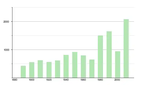 | 1980 | 1 508 | ▲ +130,58 % | |
