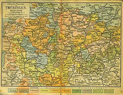 En 1909, en raison de l'extinction de la branche de Sondershausen, les deux États sont de nouveau réunis sous le nom de principauté de Schwarzbourg, qui devient une république en (abdication du prince régnant) ; en 1920, celle-ci est intégrée dans le nouvel « État libre de Thuringe »[3].