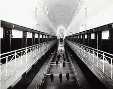 Du point de vue architectural, le centre de détention est en forme d'astérisque avec une tour centrale vers laquelle convergent 6 ailes, surmontée d'un dôme dont la coupole est située à 150 pieds au-dessus du sol. La chapelle catholique occupe le sommet de cette tour. La détention est aussi caractérisée par des cellules aux murs imposants, des portes pleines en fer et de grandes fenêtres donnant sur l'extérieur et des toilettes chimiques.