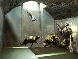 Il y peint et y colle une cinquantaine de ses géants emblématiques sur les murs du bâtiment (portail d'entrée, couloirs, cellules...), œuvres qui sont le fruit de ses rencontres avec les détenus en 1989[10],[11] :