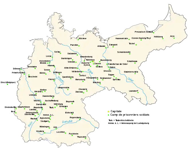 Les camps ne sont pas tous situés en territoire allemand, et un certain nombre sont construits dans les territoires occupés et notamment dans la partie nord et est de la France. Ils commencent à se développer à partir de 1915 où le nombre de prisonniers captifs en Allemagne atteint 652 000[7]. Selon les directives officielles, chaque prisonnier doit disposer de 2,5 m2[8]. Les camps brassent un grand nombre de nationalités partageant les mêmes logements : on y retrouve en effet des prisonniers français, russes, britanniques, américains, canadiens, belges, italiens, roumains, serbe, portugais, japonais, monténégrins mais également grecs ou brésiliens. Ils font se côtoyer également des soldats d’origines sociales diverses. On y trouve des ouvriers, des paysans, des fonctionnaires ou des intellectuels.