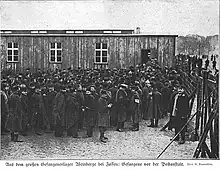 La progression rapide de l’offensive allemande dans les premiers temps de la guerre entraîne un afflux massif de prisonniers. À partir de 1915[13], des camps de transit, les Durchgangslager, sont construits pour gérer et rediriger ce flux vers les camps de détention.