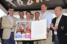 | 2012 | 9e Prix Jacques-Goddet-Trophée Carrefour | Gilles Comte | Thibaut Pinot, au nom du frère | L'Équipe | Bernadette Chirac[9] | Didier Decoin | Estampe d'Erró |