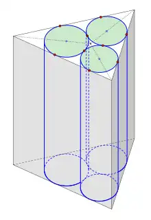 Le problème initial posé par Malfatti était de déterminer les trois colonnes circulaires de marbre, éventuellement de différentes tailles, qui, sculptées dans un prisme droit triangulaire, auraient le plus grand volume (voir figure) [1]. Ce problème en 3D est évidemment identique au problème en 2D ci-dessus ; d'où l'expression "marble problem" qui lui est parfois donnée.