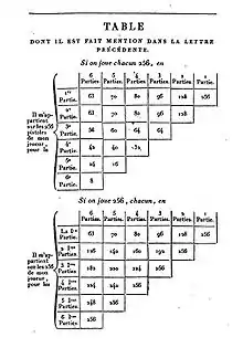 - "J'admire bien davantage la méthode des partis que celle des dés; j'avais vu plusieurs personnes trouver celle des dés, comme M. le Chevalier de Méré, qui est celui qui m'a proposé ces questions..." Pascal (1954) p.77.