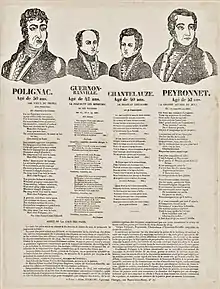 | Portraits des accusés. De gauche à droite, et de haut en bas : Polignac, Chantelauze, Guernon-Ranville et Peyronnet. | |