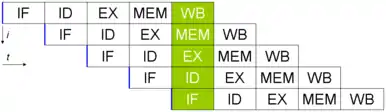 La dernière étape, writeback (écriture du résultat), écrit les résultats de l'étape d'exécution en mémoire. Très souvent, les résultats sont écrits dans un registre interne au processeur pour bénéficier de temps d'accès très courts pour les instructions suivantes. Parfois, les résultats sont écrits plus lentement dans la mémoire vive pour bénéficier de codages de nombres plus grands.