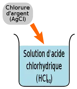 Si l'on dissout du chlorure d'argent dans la solution d'acide chlorhydrique à 0,1 mol L−1, la situation est la suivante :