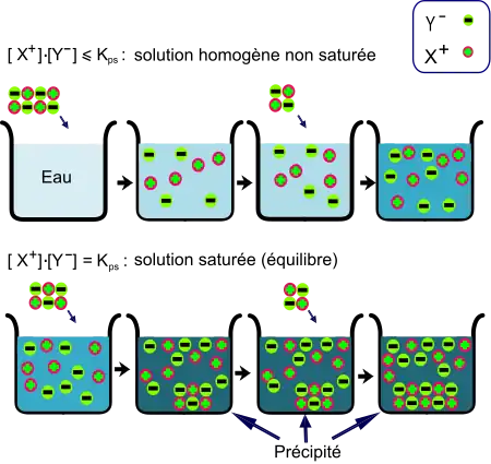 Soit s la solubilité de XαYβ. On pose . La dissolution dans 1 L d'eau pure de x moles de XαYβ donne αx moles de Xα et βx moles de Yβ. On peut décrire la situation de la manière suivante :