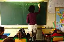En France, les professeurs des écoles constituent un corps de catégorie A de la fonction publique française regroupant des enseignants ayant pour mission première de travailler avec les élèves scolarisés à l'école primaire publique et privée sous contrat. Ces professeurs travaillent donc avec des enfants généralement âgés de 2 à 11 ans, aussi bien à l'école maternelle qu'à l'école élémentaire. L'accès au métier se fait par un concours, suivi d'une période d'essai d'un ou deux ans[1] encadrée par un maître-formateur sous contrôle d'un inspecteur à l'issue de laquelle le professeur des écoles stagiaires est soit certifié en tant que professeur des écoles de classe normale, soit licencié. Les candidats au concours doivent être titulaires au minimum d'un diplôme de niveau master (Bac+5).