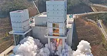 Le premier vol du lanceur complet a lieu le 21 octobre 2021. Les deux premiers étages fonctionnent de manière nominale mais le troisième étage s'éteint au bout de 47 secondes soit 46 secondes trop tôt. La charge utile, qui s'est séparée comme prévu du dernier étage à une altitude de 700 kilomètres, n'a toutefois pas une vitesse suffisante pour se maintenir en orbite et retombe sur Terre en se désintégrant dans l'atmosphère. Une commission doit déterminer l'origine de l'anomalie et la corriger avant le deuxième vol de qualification programmé[26]. Le deuxième vol partant du site de lancement de Goheung[27], qui a lieu le 21 juin 2022, est cette fois couronné de succès[28]. Le projet a coûté en tout 1,43 milliard € en incluant deux vols de qualification. Courant 2021, la fabrication et le lancement de quatre autres lanceurs sont budgétés pour un montant de 440 millions €.