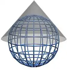 Le canevas ressemble à celui qui serait obtenu par projection géométrique sur un cône de sommet situé sur l'axe Nord-Sud.