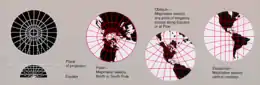 Il est parfois intéressant de construire un autre système de repérage sur le globe, constitué de pseudo-méridiens et de pseudo-parallèles, en choisissant sur le globe un autre axe principal que l'axe Nord-Sud[7]. La représentation plane de ces pseudo-méridiens et pseudo-parallèles définit un autre canevas. Quand ce canevas est constitué de pseudo méridiens parallèles et équidistants et de pseudo-parallèles perpendiculaires aux pseudo-méridiens, on parle de projection cylindrique