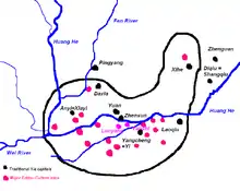 Les archéologues se sont concentrés sur la vallée du fleuve Jaune dans le Henan, qui devient alors pour eux la localisation la plus probable des États décrits dans l'histoire traditionnelle. Après 1950, des vestiges d'une ancienne ville fortifiée de la culture d'Erligang ont été découverts près de Zhengzhou. En 1959, le site de la culture d'Erlitou est découvert à Yanshi, au sud du fleuve Jaune, près de Luoyang. La datation par le carbone 14 suggère que la culture d'Erlitou a prospéré entre 2100 et 1800 av.J.C. Ils ont construit de grands palais, suggérant l'existence d'un État organisé[3]. Plus récemment, la découverte de civilisations avancées dans le Sichuan et dans la vallée du Yangtsé, telles que les cultures de Sanxingdui, Panlongcheng et Wucheng compliquent la situation, car l'histoire traditionnelle n'en fait aucune mention[5].