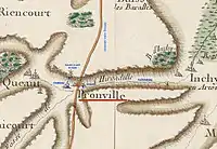 La carte de Cassini ci-dessus montre qu'au milieu du XVIIIe siècle, Pronville est une paroisse traversée par le ruisseau L'Hirondelle.