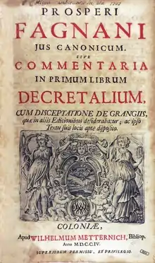 - Prosperi Fagnani Commentaria in primum [-quintum] librum Decretalium, Venezia, ex typographia Balleoniana, 1729 ; Besançon, 1740 ;