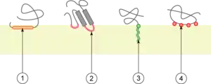 Les protéines membranaires peuvent être classées en fonction des structures leur permettant d'interagir avec la membrane et la manière dont celles-ci s'agencent. Les types de structures mises en jeu et leurs organisations sont regroupés sous le terme de topologie membranaire.