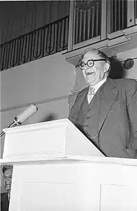 - Principe de la Réforme protestante[10], que Luther considère comme central, selon lequel chaque baptisé est « prophète, prêtre et roi » sous la seule seigneurie du Christ. Ce concept anéantit les principes de hiérarchie au sein de l'Église. Chaque baptisé a une place de valeur identique, y compris les ministres (dont les pasteurs font partie). Issus d'études de théologie et reconnus par l'Église, ils sont au service de la communauté pour l'annonce de la Parole de Dieu (prédication et sacrements) et les missions particulières qui en découlent. Les femmes ont accès aux ministères de certaines Églises protestantes, cela ayant évolué en fonction des pays et des époques.