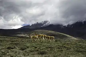 Vicugna vicugna dans la réserve faunique du Chimborazo, Equateur