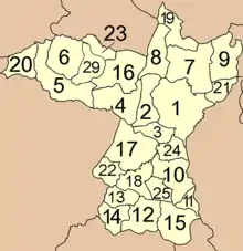 Khon Kaen est subdivisée en 26 districts (amphoe) : Ces districts sont eux-mêmes subdivisés en 198 sous-districts (tambon) et 2 139 villages (muban).