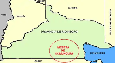 - La Meseta de Somuncurá : vaste région protégée de quelque 15 000 km2 située au centre-sud de la province de Río Negro et au nord de celle du Chubut. C'est un haut plateau basaltique, avec des cônes d'anciens volcans et des montagnes pouvant aller jusqu'à 1 900 mètres d'altitude, comme le Cerro Corona. Entre ces sommets on trouve des lagunes temporaires. Toute cette zone présente un grand intérêt géologique, climatique, biologique et écologique. On y trouve des espèces végétales et animales endémiques, comme la mojarra desnuda (ou Gymnoscharacinus bergi, un petit poisson characin), le petit lézard des rochers, la grenouille de Somuncurá, et un habitant des rochers : le pilquín ou chinchillón.