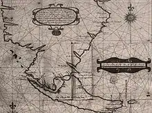 Carte de l'« île de Xativa », nom donné à la grande île de la Terre de Feu jusqu'au début du XVIIe siècle.