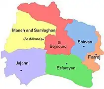 Les autres départements sont Chirvan, Djadjarm, Maneh-et-Samalghan, et Esfarayen.