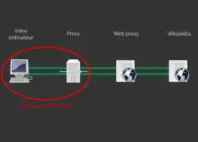 Attention : le proxy se situe au niveau de la couche application (HTTP, FTP, SSH, etc. de niveau 7 du modèle OSI). Une erreur commune est d'utiliser la commande traceroute (ou tracert sous Windows) pour tenter de voir le proxy. Il n'apparaît pas car cette commande utilise le protocole réseau IP de niveau 3 et ne peut donc pas connaître le proxy.