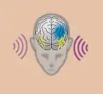 À la limite entre l'acoustique et la psychoacoustique, l'étude de la fonction de transfert relative à la tête (Hrtf, (en) head-related transfer function) caractérise les transformations apportées aux ondes sonores par le corps d'un auditeur, principalement la tête, le pavillon de l'oreille et le conduit auditif. On quantifie ainsi les différences entre les sons qui parvient à chacune des oreilles, qui permettent à l'être humain de repérer l'origine d'un son, surtout en azimut (horizontalement), et dans une moindre mesure en site (verticalement)[35].