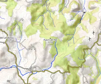À proximité de ce puech (en occitan puèg signifie « mont »[2]) se trouvent le pic du Pendu (1 074 mètres) et le mont Caune (1 040 mètres).