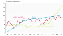 Le pétrole saoudien fait actuellement l'objet d'un bras de fer entre les États-Unis et la Chine. Pour certains analystes de Commerzbank, « Le risque d'une guerre commerciale entre les États-Unis et la Chine [...] est complètement ignoré par le marché. Mais cela ne durera pas forcément, dans la mesure où ces deux pays sont les plus gros consommateurs et importateurs de pétrole au monde », pointant du doigt un regain du protectionnisme[14].