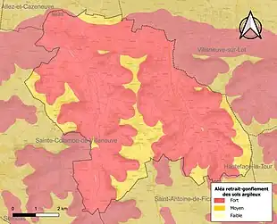 Le retrait-gonflement des sols argileux est susceptible d'engendrer des dommages importants aux bâtiments en cas d’alternance de périodes de sécheresse et de pluie[22]. La totalité de la commune est en aléa moyen ou fort (91,8 % au niveau départemental et 48,5 % au niveau national)[23]. Depuis le , en application de la loi ELAN, différentes contraintes s'imposent aux vendeurs, maîtres d'ouvrages ou constructeurs de biens situés dans une zone classée en aléa moyen ou fort[Note 3],[24].