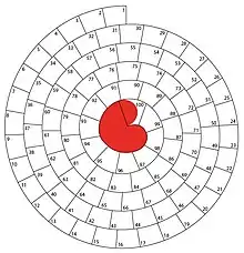 Un puzzle en spirale est un jeu sur les mots dont les lettres sont des pièces élémentaires qui, accolées, forment une spirale. Une puzzle en spirale est essentiellement une longue chaîne de mots dans deux directions[1] : dans le sens antihoraire vers l'intérieur, et dans le sens horaire vers l'extérieur (pour des spirales dites tournant à droite)[2]. Les pièces s'enroulent tel un serpentin. Les mots à entrer à remplir dans le sens antihoraire sont entrées dans les cases 1 à 100. Les mots qui doivent être entrés dans le sens des aiguilles d'une montre fournissent un autre ensemble de mots qui doivent être entrés de 100 à 1[3]. La solution finale peut consister en un certain nombre de cases[4].