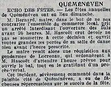 - Journal La Dépêche de Brest et de l'Ouest, « Quéménéven. », sur Gallica, (consulté le ).