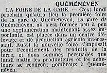 - Journal La Dépêche de Brest et de l'Ouest, « Quéménéven. La foire de la gare. », sur Gallica, (consulté le ).