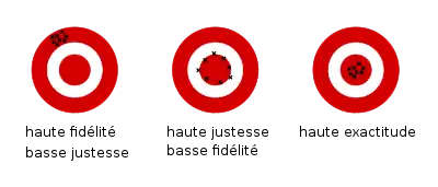 On peut représenter symboliquement la fidélité, la justesse et l'exactitude de la manière suivante :
