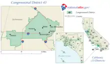 De 2003 à 2013, le 43e district était basé dans le Comté de San Bernardino. Le district à majorité hispanique englobait la partie sud-ouest du comté et comprenait San Bernardino et Rialto.