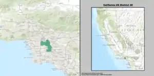 À partir du redécoupage de 2020, le 40e district congressionnel de la Californie est situé en Californie du Sud. Il comprend la majorité du nord et de l'est du Comté d'Orange, ainsi que le sud-ouest de San Bernardino.