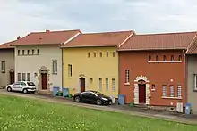 Le , Vincent Auriol alors président de la République pose la première pierre de la cité d'habitation[2] en présence de René Coty alors Ministre de la Reconstruction et de l’Urbanisme accompagné du préfet de Saône-et-Loire Pierre Lambert. Étaient aussi présents Pierre Denave, maire de Mâcon et les architectes du projet.