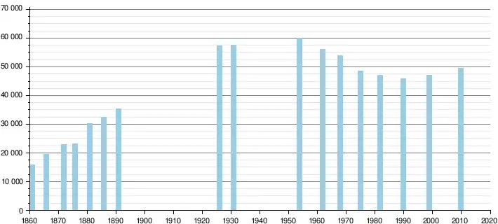 - Population « légale » ou « de droit », c'est-à-dire ne comprenant pas la population de passage. Pour plus de détails, voir la source du chiffre de 1891.