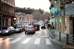 ![]() La rue de Foresta à son départ du monument aux morts. À droite le square Guynemer. |