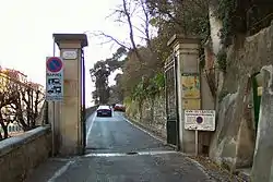 ![]() La rue Fodéré vue à l'opposé. Prise de vue sur l’escalier qui termine la rue sur les flancs du Mont-Boron. |