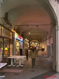 ![]() Les arcades de la place Garibaldi, désertes un dimanche matin après les fêtes de noël. |