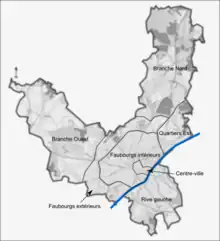 Les principaux quartiers sont indiqués en gras |