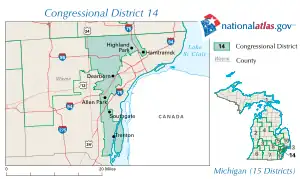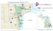 Le 14e district congressionnel du Michigan était un district qui s'étendait de l'est de Détroit vers l'ouest jusqu'à Farmington Hills, puis au nord jusqu'à la banlieue de Pontiac. De 1993 à 2013, il était entièrement basée dans le Comté de Wayne.