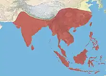 Il se reproduit dans les marais du sud de l'Asie depuis le Pakistan, l'Inde et le Sri Lanka jusqu'au sud de la Chine et l'Indonésie.