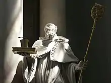 À sa mort en 547, Benoît laisse à la postérité une communauté : le monastère du Mont-Cassin, et sa règle. Mais le monastère est détruit par les Lombards et abandonné par ses moines en 589. La règle, déjà copiée et diffusée, n'est cependant pas perdue[16]. Peu après, le pape Grégoire le Grand donne une publicité décisive à Benoît et à son œuvre en lui consacrant tout le Livre II des Dialogues[17], compilation de vies de saints, parmi lesquels Benoît de Nursie occupe une place primordiale en tant que patriarche des moines d'Occident.
