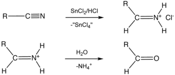 - (en) Cet article est partiellement ou en totalité issu de l’article de Wikipédia en anglais intitulé « Stephen aldehyde synthesis » (voir la liste des auteurs).